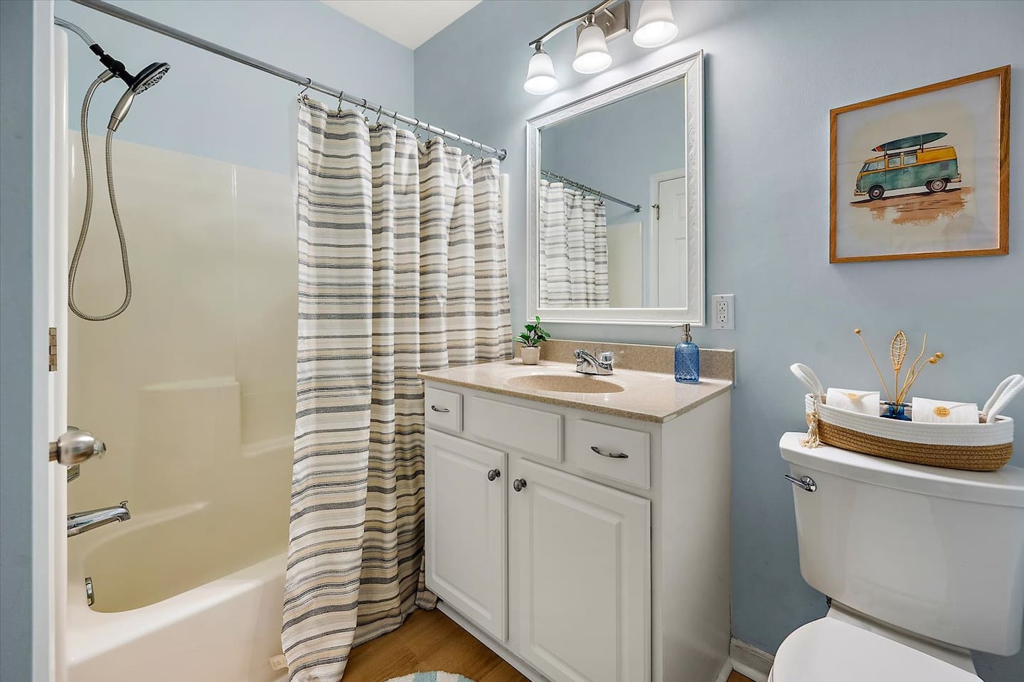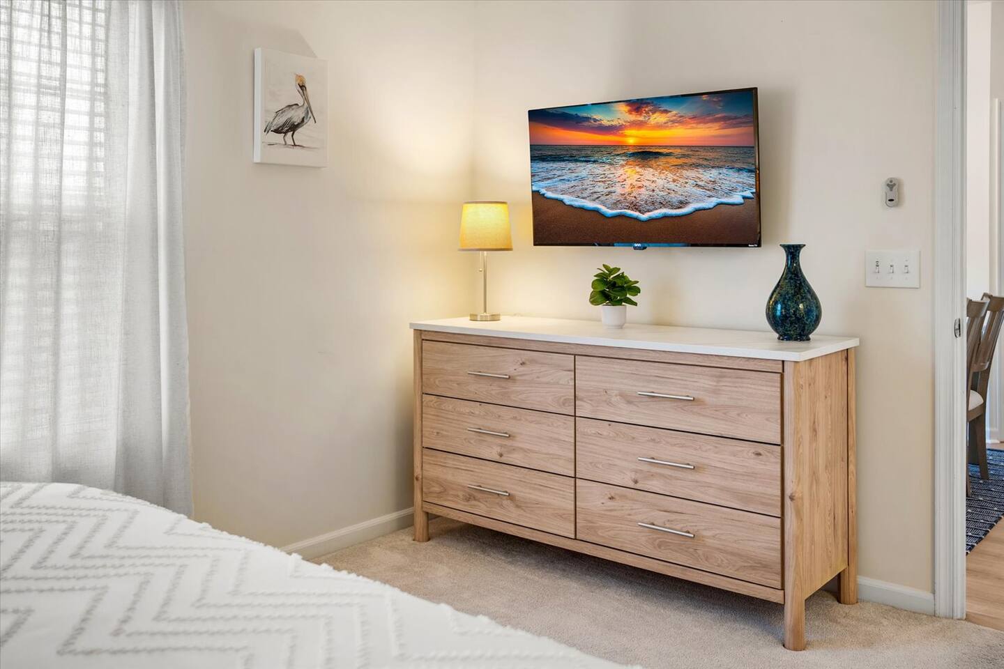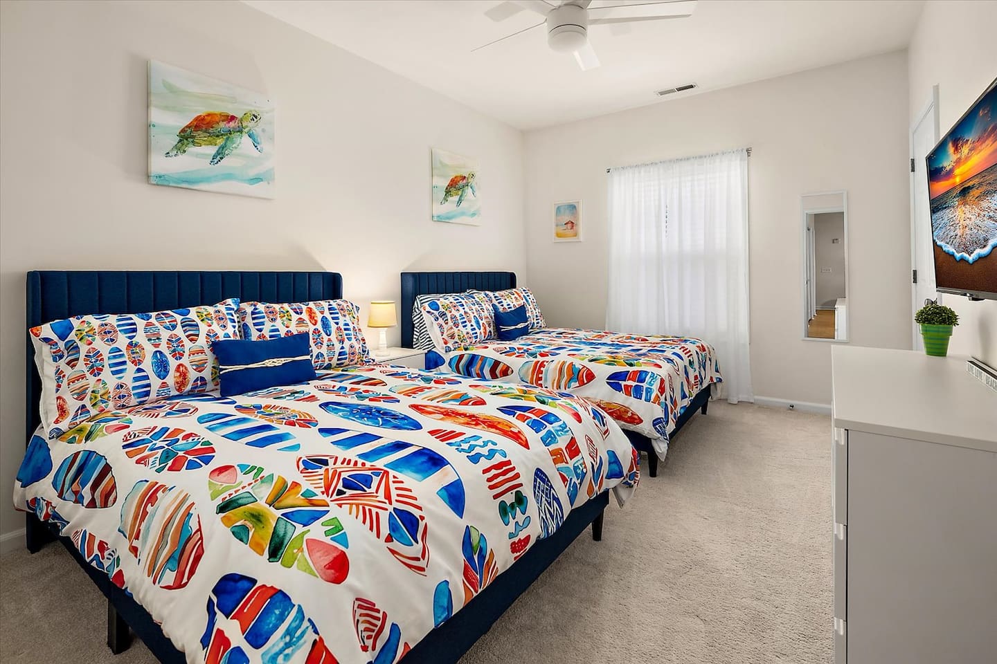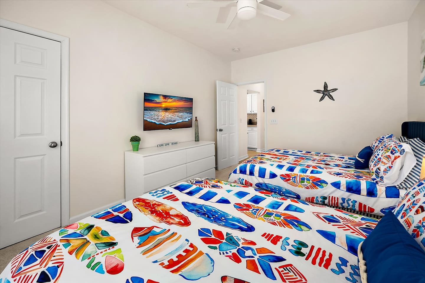 302 Surf House is your beach getaway is designed for comfort, relaxation, and effortless vacation living. Everything is thoughtfully curated to help you unwind after a day of beach adventures. Location: You’re perfectly located to enjoy the best of Delaware’s beaches and attractions! Catch stunning sunsets at Savannah Beach, start your day with sunrise walks and ocean breezes at Cape Henlopen State Park, or spend the afternoon along the Rehoboth Beach boardwalk—all just minutes away. Walk to nearby restaurants without crossing Route 1, or take a quick drive to Lewes and Rehoboth for boutique shopping, Tanger Outlets (tax-free!), movie theaters, bowling at Lefty’s, rooftop mini-golf, go-karts, water parks, and local vineyards. Love the outdoors? Hop on the scenic Junction & Breakwater Trail, a beautiful 6-mile path connecting Lewes and Rehoboth—perfect for walking, biking, and stopping at great local eateries along the way. Getting around is easy with the DART Park-and-Ride and Cape May–Lewes Ferry just minutes away, making day trips and coastal exploring effortless. Whether you’re here to relax, explore, or do a little of both, everything you need for a perfect beach getaway is right at your doorstep Living Room: Kick back on the expansive sectional with deep seating and ottoman—perfect for stretching out during movie nights on the 50" 4K Roku TV. Enjoy the Pac-Man arcade, extra blankets, and a stash of board and card games for rainy days or late-night fun. Additional seating at the bar keeps everyone connected. Kitchen & Dining: Whether you're making breakfast before the beach or dinner after a day exploring Lewes and Rehoboth, the fully stocked kitchen has everything you need—multiple pans and cookware, casserole dishes, waffle maker, electric griddle, family-size slow cooker, barware, a coffee maker, electric kettle, spices, olive oil, vinegar, coffee, and tea. The dining table seats six. Bedrooms & Bathrooms: Rest comes easy with brand-new mattresses & fresh linens. Primary Suite: King bed, ensuite bathroom, 43” 4K Roku TV, dresser, full-length mirror, and walk-in closet. Second Bedroom: Two full beds, 43” 4K Roku TV, dresser, and walk-in closet—with a partial pool view. Each bathroom includes fresh towels, bath mats, starter toiletries, and toilet paper (2 rolls per bathroom provided). Private Screened Balcony: Start your day with coffee or end it with a breeze—your balcony offers complete privacy with no neighboring views. The attached storage closet is fully stocked with beach essentials, including beach chairs, an umbrella, beach towels, toys, and a cooler. Laundry & Essentials A separate laundry room with a brand-new washer & dryer, baskets, starter detergent, iron, and ironing board makes longer stays a breeze. Work & Play: With 500 Mbps high-speed Wi-Fi and a movable desk and chair, working from vacation has never been easier—set up in any room or on the balcony. Pool & Parking: The beautiful community pool is just steps away, with guest access and towels provided. Parking is free and unassigned. 302 Surf House is more than a stay—it's your home by the beach, where relaxation, convenience, and the best of coastal Delaware come together. Drop your bags, kick off your shoes, and start making memories.